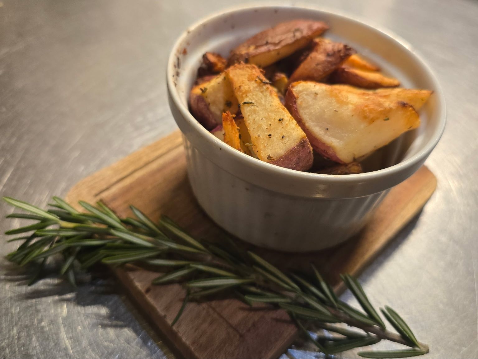 Corned Beef, sauerkraut, melted swiss & mozz blend, thousand island spread served on a garlic buttered focaccia bread. Served with roasted potatoes.