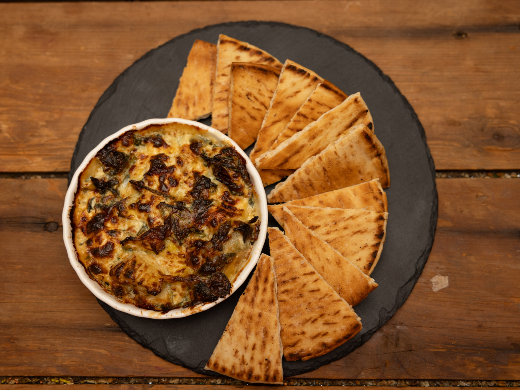 warm roasted artichokes & spinach dip served with warm pita bread