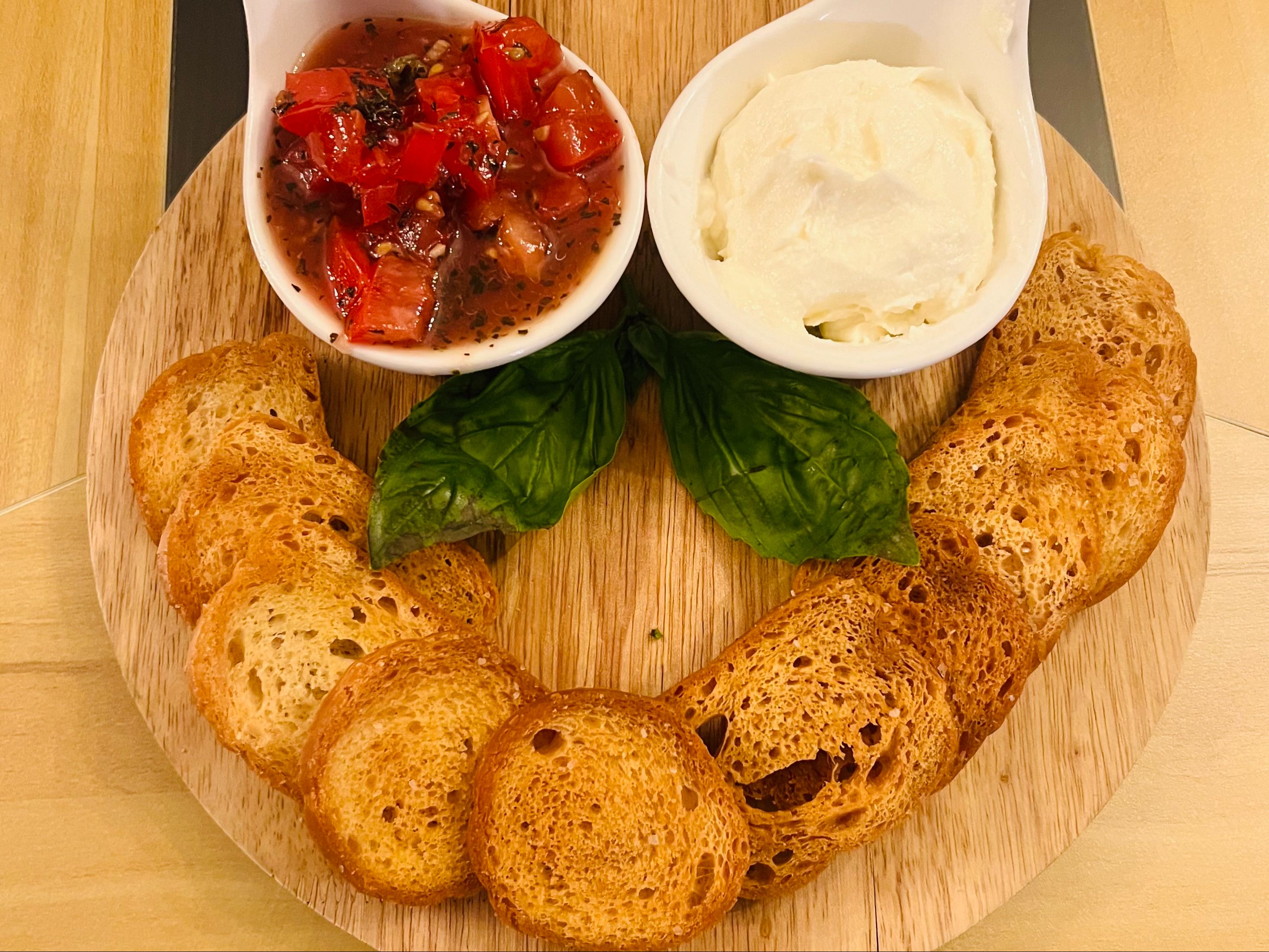 marinated tomatoes & garlic served with toast and whipped ricotta